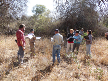 “La jornada transcurrió en distintas parcelas de un campo privado destinadas y habilitadas por Ambiente para la realización de este tipo ensayos, tratándose en este caso de un sistema de uso múltiple enfocado a lo silvo-pastoril pero atendiendo a los recursos del monte y todos los usos que hacen los campesinos del mismo. En cada parcela estaban representados diversos estados del monte y con diversas intervenciones humanas con lo cual el recorrido consistió en que cada productor asistente analizara el escenario, aportara su visión y evaluara de acuerdo a su experiencia la manera de optimizar las condiciones del mismo para su aprovechamiento.”